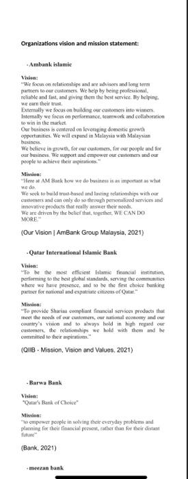 Organizations Vision And Mission Statement Ambank Chegg Com